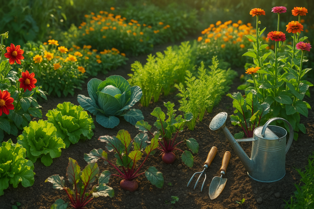 Choose plants suited to your local climate and your taste. Start with easy-to-grow vegetables like tomatoes, lettuce, and herbs to build confidence.